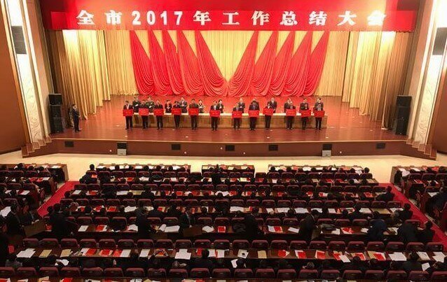 全市2017年工作总结大会在国际会展中心举行,市委副书记、市长张永霞出席并作重要讲话。大会对过去一年涌现出来的一批成绩突出的先进集体和先进个人给予表彰市领导为2017年度经济社会发展综合考核先进集体和先进个人代表颁奖,并兑现了制造业强市和创新驱动发展战略奖励政策。江苏五亭龙科技集团有限公司被授予“经济发展功勋企业”,公司党委书记、董事长杨恒坤被授予“经济发展功勋个人”荣誉称号。