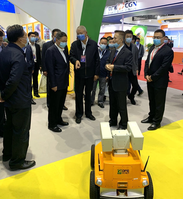烟台市委书记张术平一行参观了江苏五亭龙科技集团有限公司展厅,详细询问了公司自主研发的智能巡检机器人及其它模块装置。股份公司副总经理陈勇代表公司向领导及嘉宾汇报了公司在核电领域的新技术、新成果,充分表达了公司服务中国核电的信心和决心。