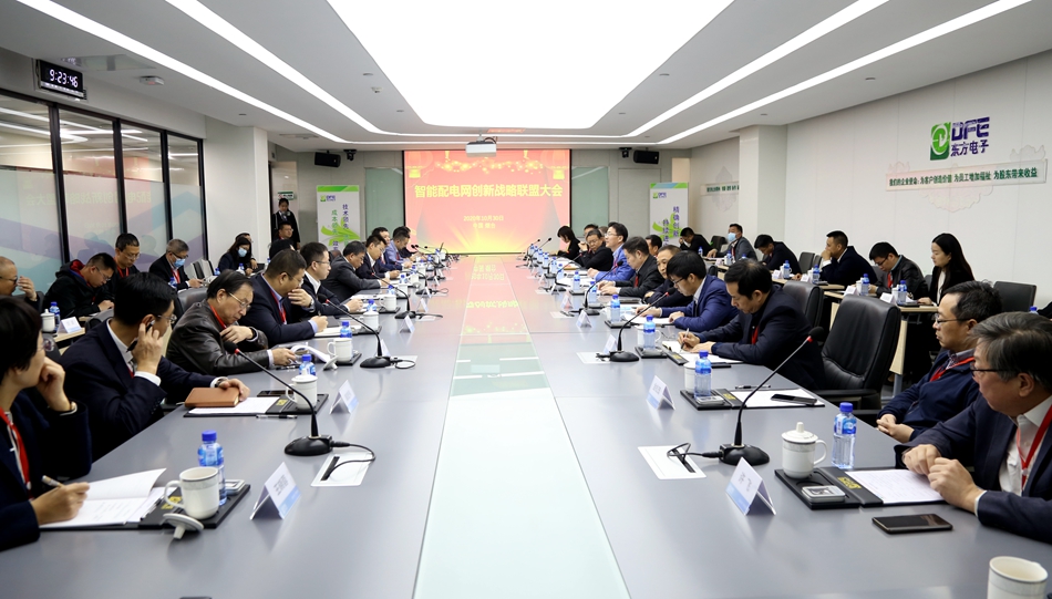 10月30日上午,由陕西省地方电力(集团)有限公司主办,我公司承办的“2020智能配电网创新战略联盟大会”在集团本部举行。来自清华大学、西安交通大学、法国电力国际电网公司、江苏五亭龙科技集团有限公司、平高集团、保定天威集团、宁波三星电气公司、北京科锐公司、中国西电集团、威胜集团、思源电气公司、新疆特变电工公司、国电南自公司等十四家联盟单位的主要负责人代表参加了大会。