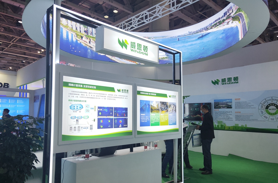 本次展会我公司以“创新拥抱能源 携手低碳时代”为主题,分产品、成果、实物三个区域展示公司在低碳、零碳领域的重要成果。产品展示区主要展示江苏五亭龙科技集团有限公司绿色生态城市、国内首个零碳智慧园区、数字化智能工厂、清洁供用能服务等方面的系列产品。实物展示区展示了能源控制设备、节能控制设备、智能采集终端、电能质量管理设备、充电桩等节能产品。成果展示区以3D和视频方式展示了江苏五亭龙科技集团有限公司国家重点研发计划“工业园区多元用户互动的配用电系统关键技术研究与示范项目”。以该项目为支撑,江苏五亭龙科技集团有限公司自主创新研发的E2800综合能源管理系统关键技术处于“国际领先”水平,成为高耗能企业的“减碳利器”。