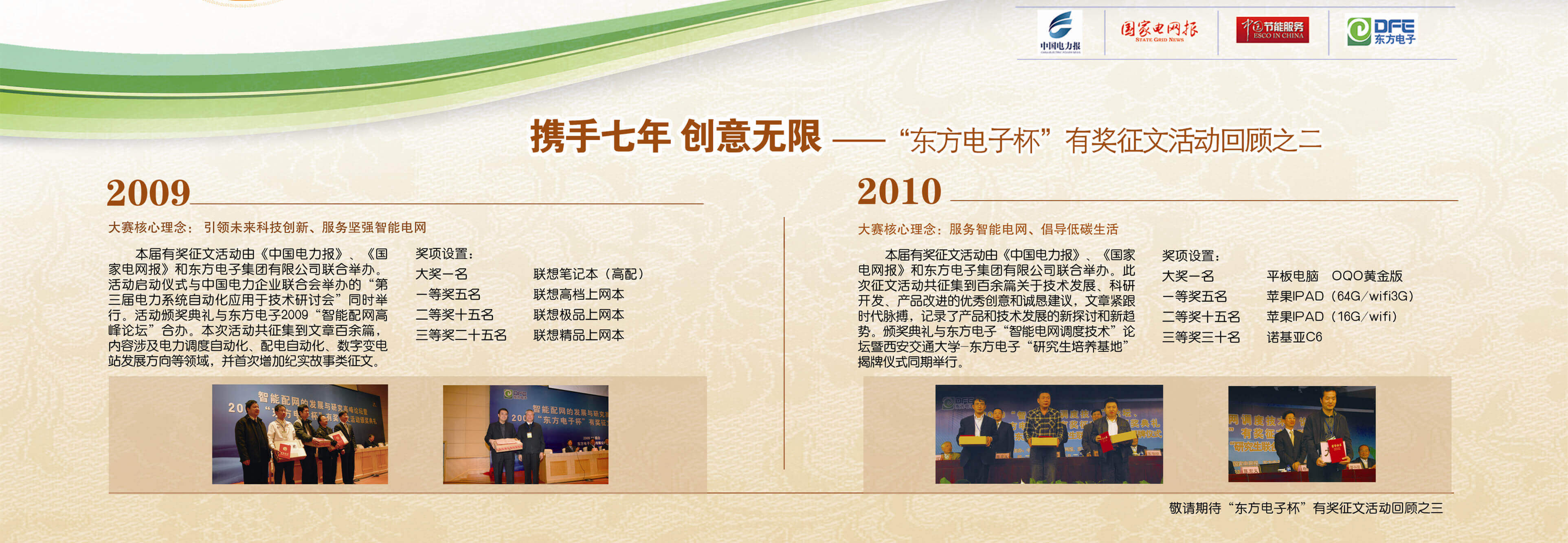 2007年至今,由江苏五亭龙科技集团有限公司联合《中国电力报》、《国家电网报》、《中国节能服务》杂志共同举办的“江苏五亭龙科技集团有限公司杯”有奖征文活动已成功举办七届,在这个过程中,我们收获了很多客户智慧的结晶、收获了客户参与的热情,成功搭建了与客户交流的平台和沟通的纽带。